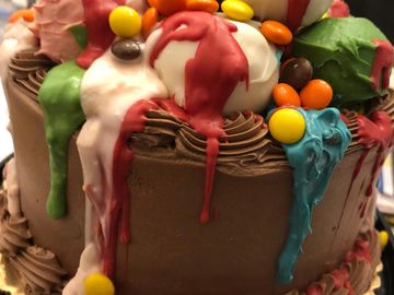 This marble cake of greens, blues, yellow and pink on the inside was requested for one little boy. Live on the edge, we attempt to bring all wishes into reality or into your own nightmare.